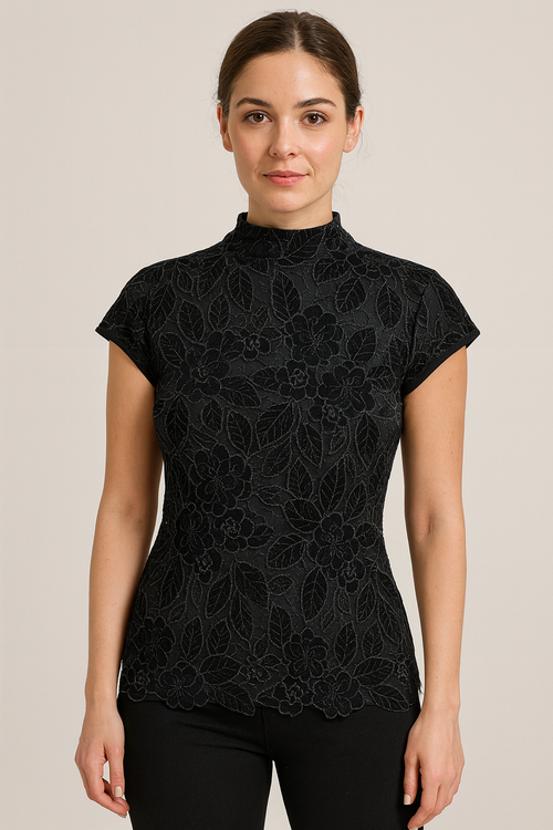 Black Pearl-Trim Two-Piece Set – Square Neck Top & High-Waist Wide-Leg Pants